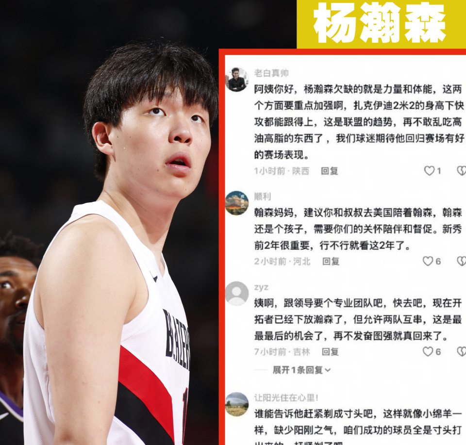 在杨瀚森母亲的评论区,球迷们的留言堪称看热闹不嫌事大,有网友直截了当地指出,杨瀚森目前最欠缺的就是力量和体能,必须即刻重点加强,甚至搬出了身高2米2的扎克伊迪在快攻中依旧能跟上速度的例子,强调这才是当今联盟的趋势。亦有球迷痛心疾首地告诫“再不敢乱吃高油高脂的东西了”,并恳请“姨啊,跟领导要个专业团队吧”。更有人将关注点放在了外形上,建议他立刻剃成寸头,认为现在的发型缺少阳刚之气,无法展现出足够的强硬。这些言论,从训练、饮食到形象管理,无一遗漏,其焦灼的心态可见一斑。