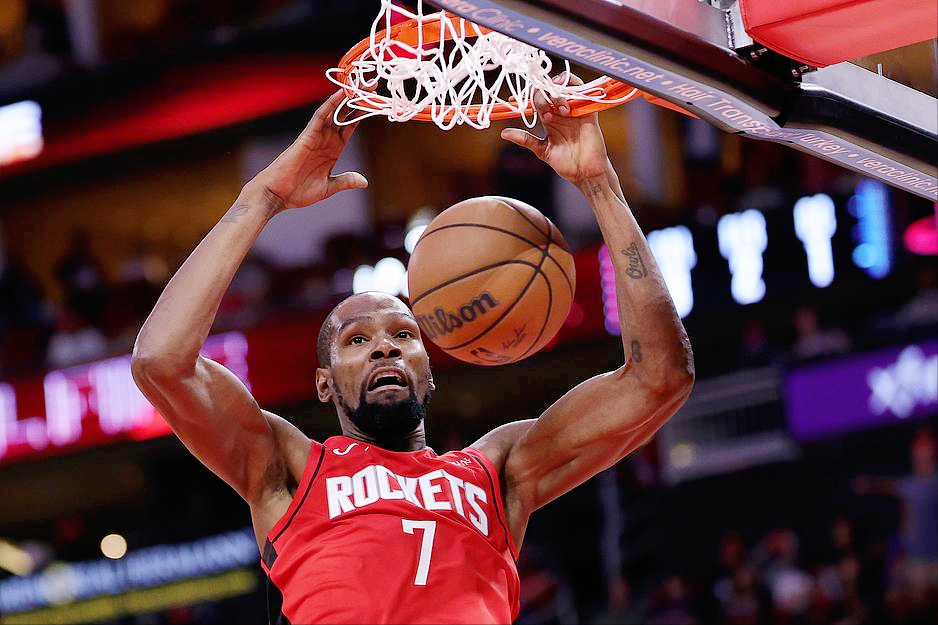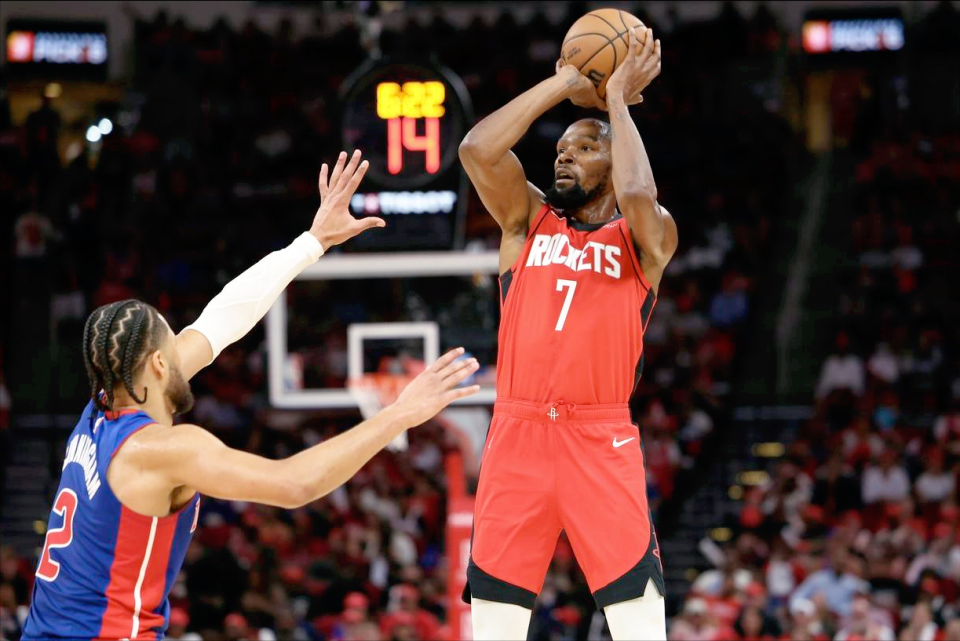最后是杜兰特,他的错位优势太明显了。身高臂展摆在那,对上谁几乎都是错位打。对手不包夹,他直接拔起来投篮或者突破;一旦包夹,他就把球分出去,火箭外线埋伏的球员马上能获得空位机会。就这一招,让对手防也不是、不防也不是,很多时候只能靠犯规来阻止他,这也是火箭罚球数高居联盟第一的关键原因。