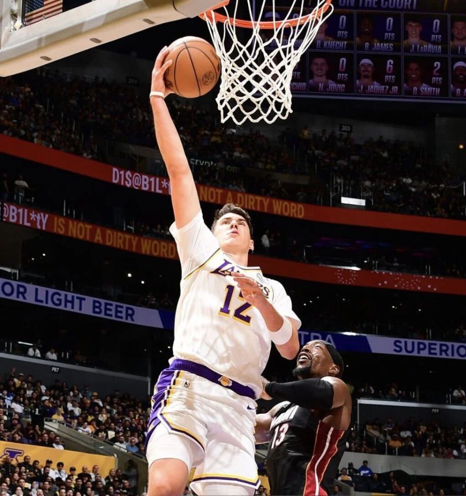 最让湖人球迷惊喜的是拉拉维亚,上半场7投6中砍下15分2助攻2抢断。今年夏天,湖人2年1200万美元签约拉拉维亚,本赛季他的三分命中率高达47.6%。半场战罢,湖人77-63领先14分。湖人投篮命中率63%,三分命中率45%。