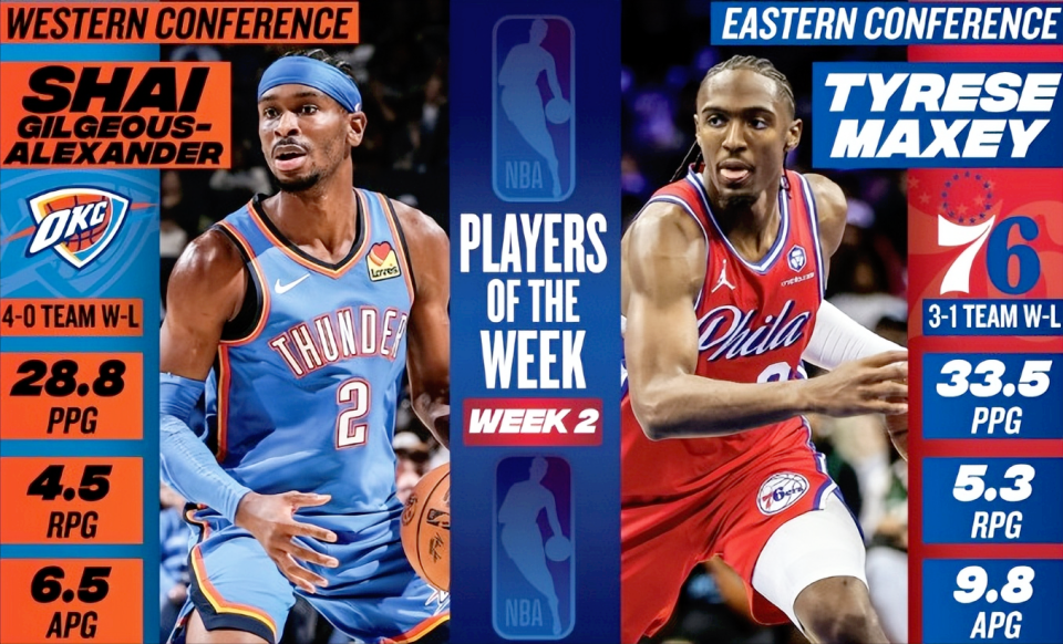 兄弟们,NBA上周东西部最佳球员名单刚公布,76人的马克西和雷霆的亚历山大当选,这俩人上周的表现,用“杀疯了”形容都不过分。更有意思的是,湖人的东契奇和里弗斯还都获得了提名,看来联盟的年轻核心们是真的要接管比赛了。