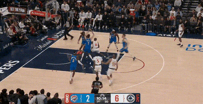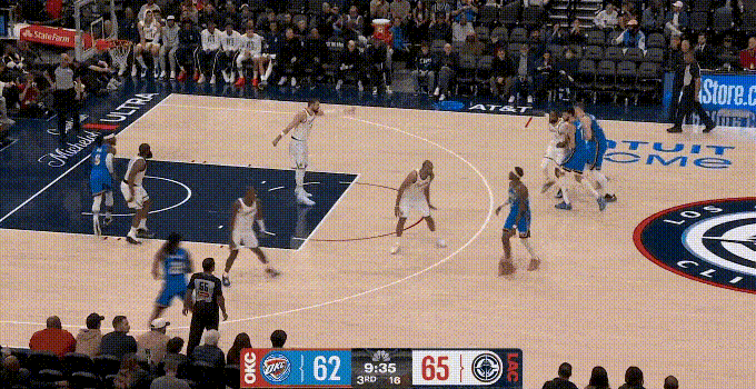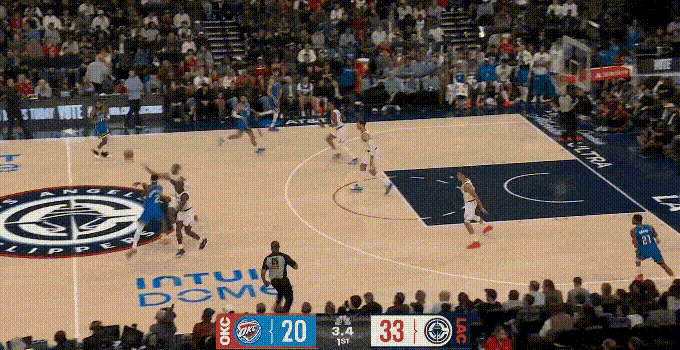 第二节开始雷霆独步联盟的全场高压紧逼开始奏效,由保罗带队的替补阵容很难扛住这样的强度。
