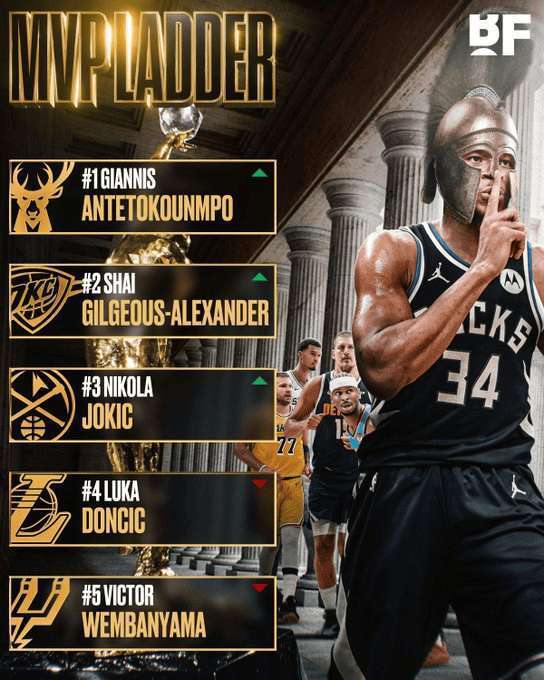 近日,美媒Basketball Forever发布了截至新赛季第二周的MVP排行榜,字母哥、亚历山大、约基奇、东契奇、文班亚马五位巨星赫然在列,那么下面我们就来看看具体的排名情况。