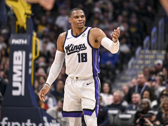 赛季至今,威少为国王出战7场比赛,场均13.9分5.9篮板5助攻,投篮命中率43.2%,三分命中率高达39.4%,罚球命中率70%。他在场的194分钟,国王百回合输给对手3.1分,而他不在场的143分钟,国王百回合要输给对手7.7分。相对而言,威少在场还能让国王少输一些分数。目前国王2胜5负,排名西部第13位。