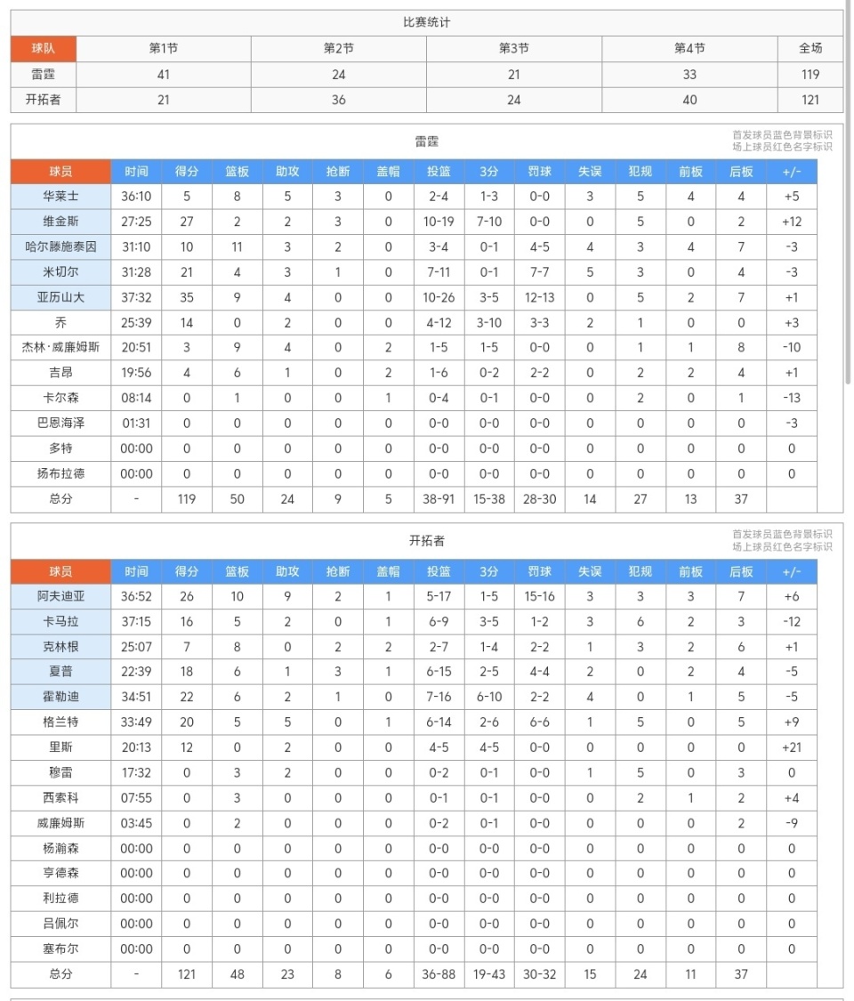 第四节开拓者很快完成了反超,不过两队陷入胶着战,雷霆队当家球星亚历山大不知不觉间又拿到30分了,但是开拓者全队状态起来了,比赛进入了紧张的决胜时刻!开拓者越战越勇,他们关键球率先打出优势,最后领先故意犯规,双方进入罚球大战,最终开拓者拿下了胜利,送雷霆赛季首败!