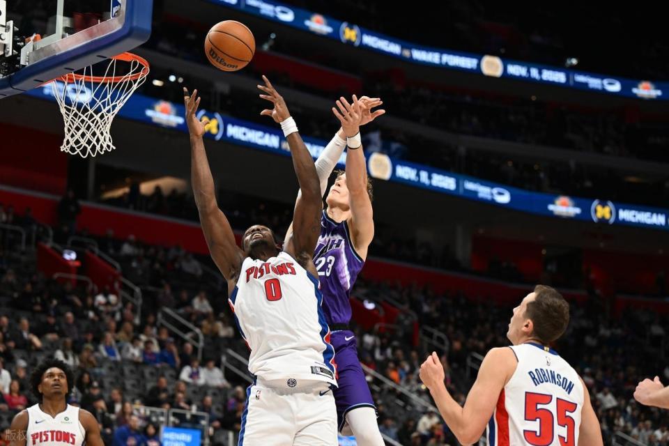 活塞主场力克爵士,康宁汉姆上半场不行,5中1,罚球1中1,只得到3分2篮板5助攻1抢断。