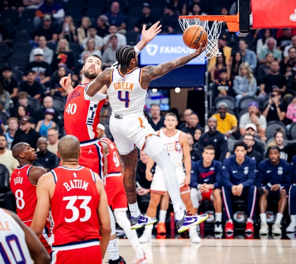 格林首秀惊艳!太阳13分大胜!布克24+7,比尔14中2,快船三连败