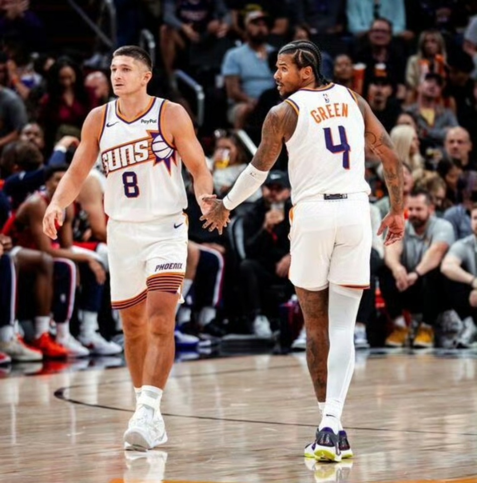 今天杰伦格林一上来就火力全开,他缺席了赛季初的一些比赛,现在选择复出肯定是准备好了,这场球在菲尼克斯主场进行,格林肯定想给现场的太阳球迷留下一个好印象,第一节比赛格林就连拿8分,他和布克、格雷森阿轮一起撑起了球队的进攻,帮助太阳首节31-27取得领先!