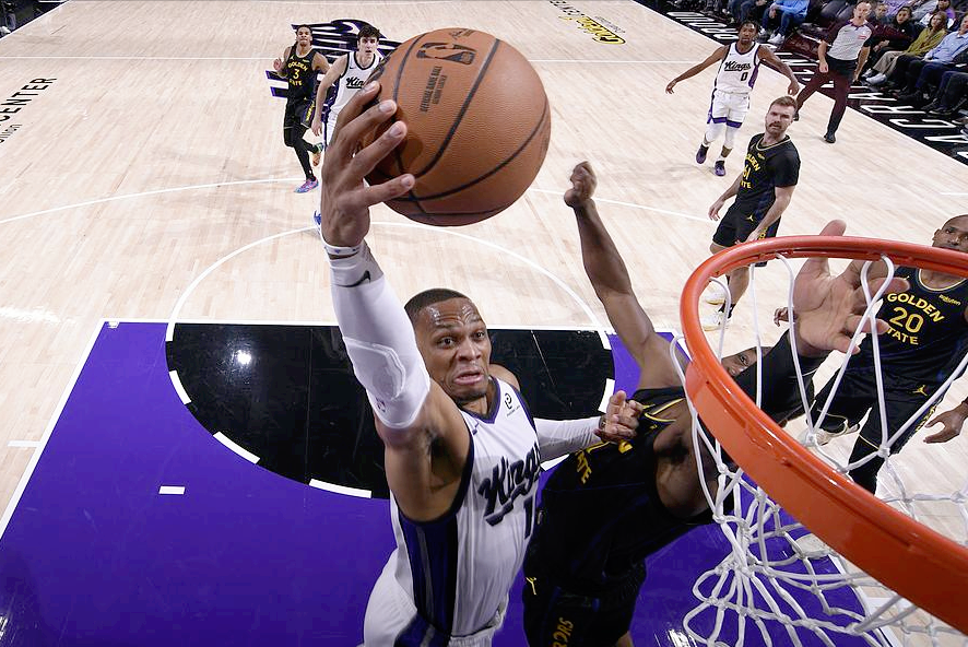 兄弟们,今儿跟大家聊聊国王打勇士这场逆袭之战——威少23分16篮板10助攻,三双救主,还顺手破了多个历史纪录:204次三双继续领跑历史,超越基德成后卫篮板王。最绝的是,这哥们儿新赛季开赛前还在失业边缘,现在却成了国王的战术核心。这剧本,比电影还燃。