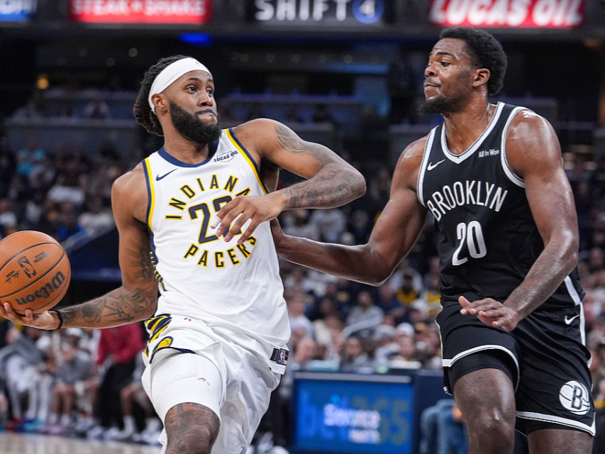 更衣室里,哈利伯顿手术后复健的影像偶尔在屏幕上闪过,而球场上的步行者正用残阵迎接又一场惨败。