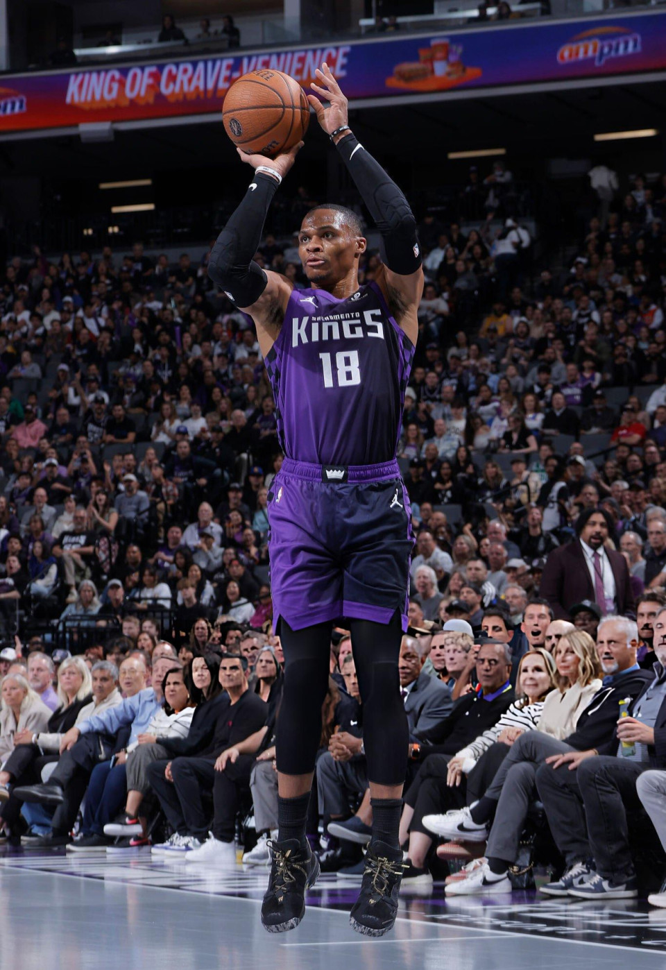 虽然国王队今天吃到败仗,但是威斯布鲁克的表现依然出色。全场比赛,威少一共首发出场35分钟,17投9中,其中三分球9中5,罚球2中1,合计得到24分6篮板9助攻,此外威少末节吃到一个一级恶意犯规。