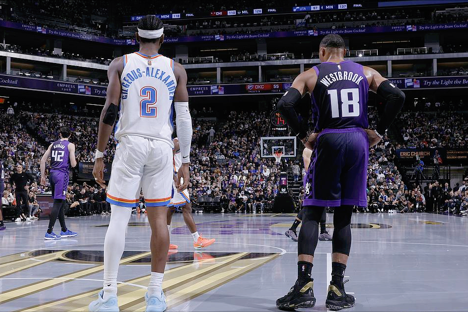 转过头看国王,简直是“一人carry全队崩”。威少17投9中砍下24分6篮板9助攻,失误7次,这是因为他被雷霆重点针对,倒也能理解。更狠的是他的续航能力,过去三场分别拿26分12篮板6助攻、23分16篮板10助攻、以及今天的24分6篮板9助攻,连续三场至少20分5篮板5助攻,以36岁361天的年龄成为NBA历史上做到这点的最老后卫,这纪录可是尘封了79年的。