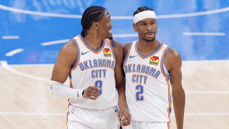 “这是一支能赢很多比赛的队伍,他们已经找到了赢球的方式,你得给他们足够的尊重。我确实看到了两队的一些相似之处:两队都阵容深厚,他们有一个绝对的核心——谢伊-吉尔杰斯-亚历山大,就像我们那时的斯蒂芬-库里,他们有一个在攻防两端都能影响比赛的霍姆格伦。等杰伦回归,他是个很棒的二当家。哈滕施泰因让我想起了当年博古特对球队的作用,板凳上有阿龙-威金斯、卡鲁索这样的球员,也很像我们那时伊戈达拉和利文斯顿的角色。”