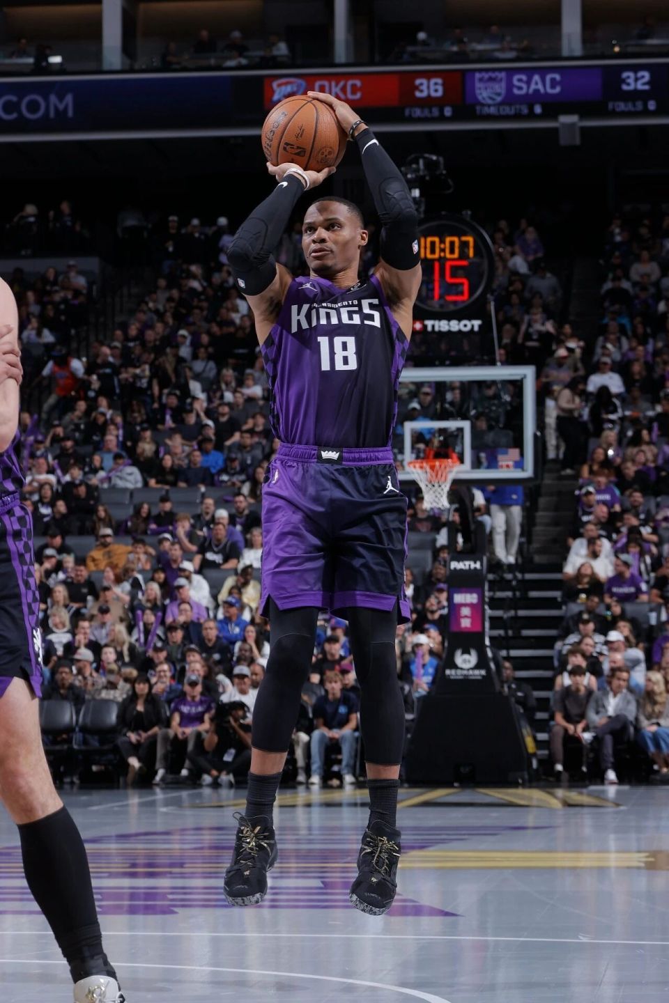 北京时间11月8日,NBA杯(季中赛),国王101-132不敌雷霆。威少首发出战35分钟,投篮17中9,三分9中5,罚球2中1,拿到24分6篮板9助攻7失误。第一节威少6中4,单节砍下11分;上半场10投6中拿到16分4篮板7助攻。