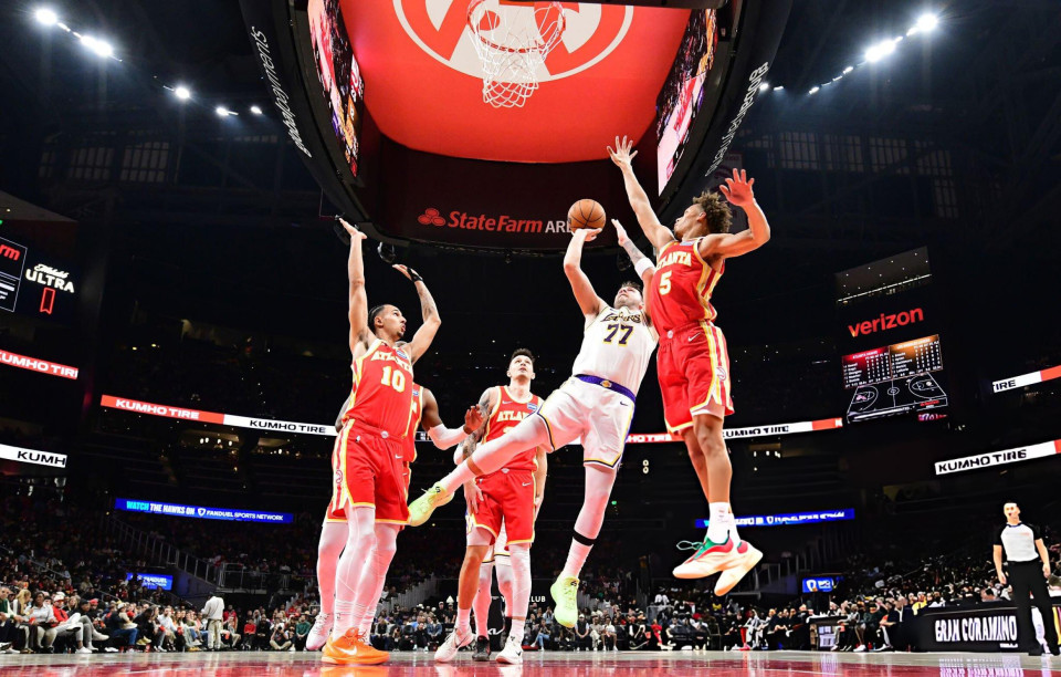 湖人队今天首节便陷入困境,他们连续被老鹰队打出进攻高潮,依靠东契奇的连续三分勉强缩小分差。进入第二节比赛后,湖人队依旧无力追分,被老鹰队在上半场结束的时候拉开分差到14分之多。第三节比赛中,湖人队再现三崩本色,单节仅得到18分,被老鹰队很快将分差拉开到25分以上。随后雷迪克换下东契奇等全部主力,宣告投降。