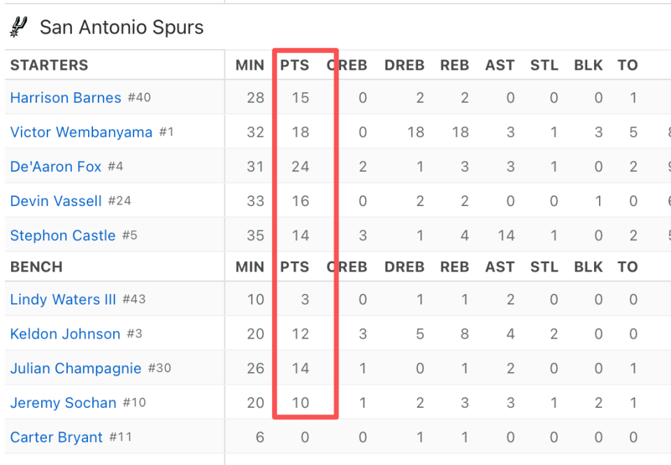 今天马刺没有谁的表现是特别炸裂的,但是全场全队有8人得分上双,阵容深度有点吓人呢。