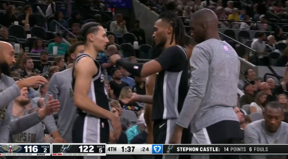 今天马刺这套阵容,打1号位的是卡斯尔,你别说,打得还怪好的。