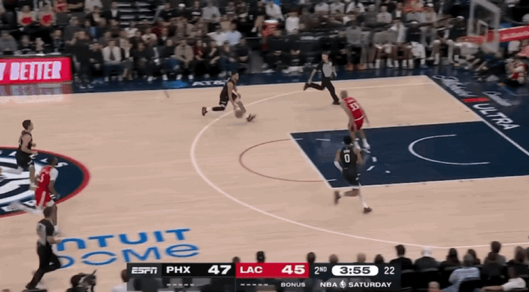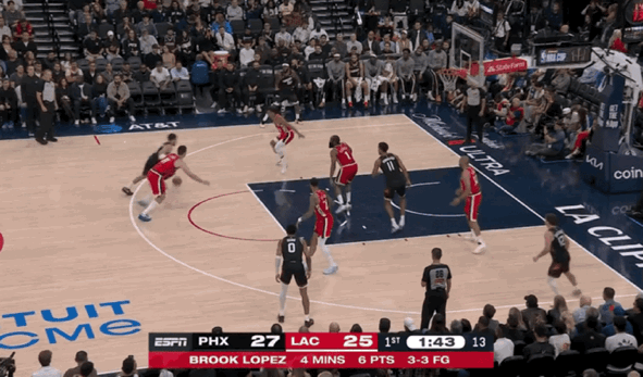 次节比赛,快船连得6分缩小分差,古德温和吉莱斯皮连续三分命中及时止损,布克在本节还剩下7分14秒回归,快船凭借着内线优势连得7分反超比分。