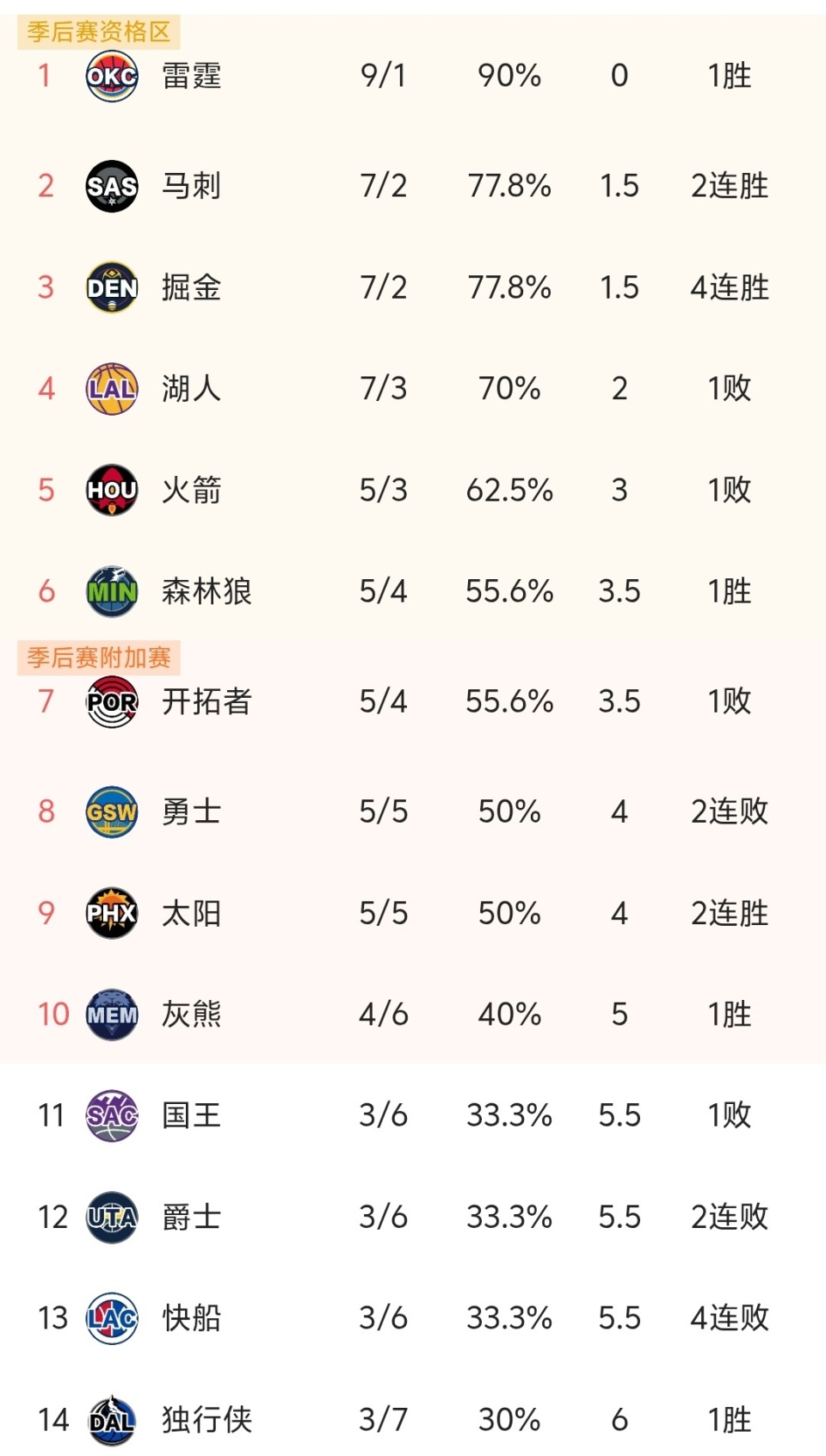 随着湖人爆冷惨败、快船4连跪,NBA积分榜大变动:火箭升至第5!