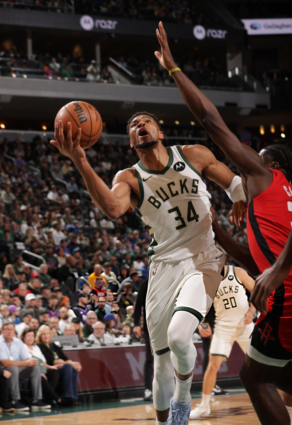 字母哥首节比赛状态并不好,四次出手仅命中一次扣篮,单节仅得到2分2助攻。次节比赛开始,字母哥开始疯狂肆虐火箭队的篮下,单节再次贡献两次暴扣,而且多次造成犯规,单节拿到9分。在字母哥的带领下,雄鹿队从次节拉开分差,建立了两位数的领先优势。