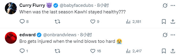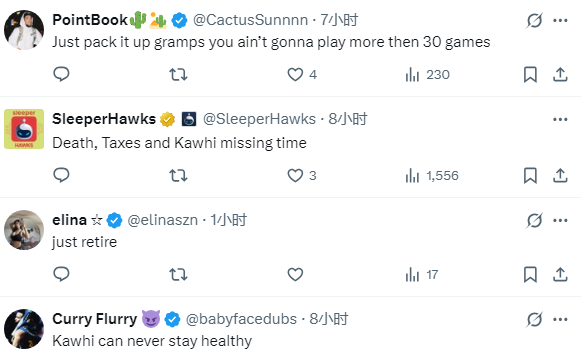 小卡因脚踝扭伤连续休战4场,他的伤情成谜引热议,美球迷纷纷表示:“小卡出款保护靴当签名鞋吧”、“这哥们外面风大点都能受伤”、“小卡上一个健康的赛季是什么时候?”、“小卡一年出战不会超过30场”、“退役吧,科怀从未一直健康过。”