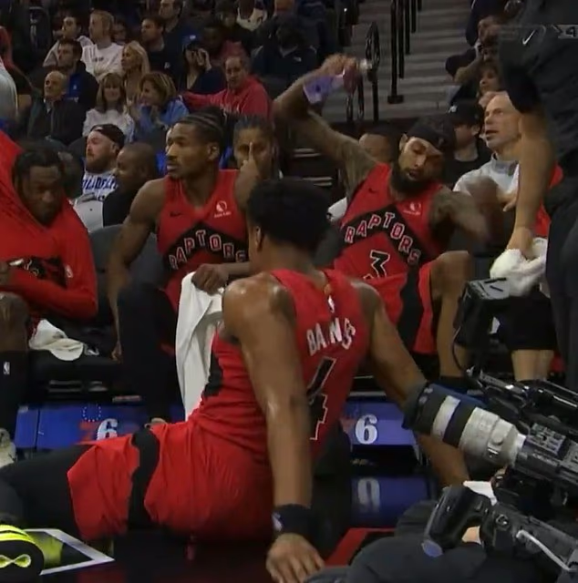 当时,英格拉姆在赛场边情绪失控,拿起一个水瓶,愤怒地砸向场地。这个水瓶弹起击中了费城76人队一名工作人员的面部,也吓了队友巴恩斯一跳。英格拉姆显然看到自己的水瓶击中了工作人员,却没有立刻道歉,只是尴尬地低头盯着地面。更糟糕的是,在这位可怜的工作人员和同事们不得不清理完液体、比赛才能恢复的过程中,英格拉姆就坐在原地无动于衷。