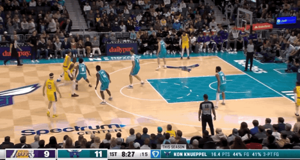本场比赛为湖人5连客的第2场比赛,球队迎来里夫斯复出,尽可能避免连败。首节比赛,里夫斯回归就和艾顿完成空接暴扣,率先为湖人取得首次运动战进球。