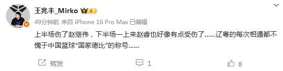 对于辽宁来说,赵继伟伤退,不仅仅是这场的问题,而拉伤并不乐观,最好不要影响到随后的CBA开赛。