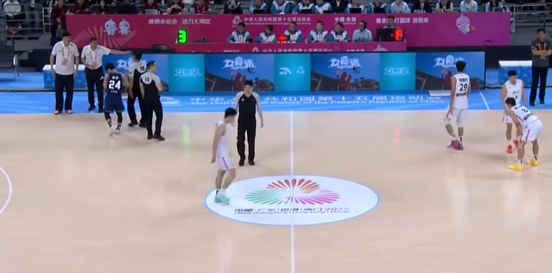 第一节比赛,焦泊乔一肘打到张洪硕面部进攻犯规,随后被换下。