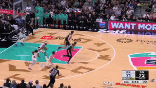 易边再战,福克斯两罚全中,库里也造犯规罚球得分,瓦塞尔命中三分,随后库里和巴特勒连中3记三分助勇士追到3分,马刺一波8-2稳住局面,瓦塞尔迎着追梦打成3+1;库里接连遭文班和瓦塞尔犯规并且5罚全中,穆迪2分,库里再中三分带领勇士反超比分;库里左右两侧打板得分对飚马刺,库里下场后巴特勒续上火力,勇士单节43-28反超比分,三节打完勇士92-84反超8分,库里单节爆砍22分。