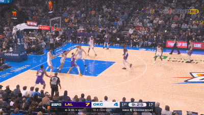 北京时间11月13日,NBA常规赛继续进行。在今天一场焦点之战中,雷霆队主场迎来湖人队的挑战。湖人队开场连连打铁,单节仅得到18分落后雷霆队12分。次节比赛开始后,雷霆队多点开花单节轰出40-20,湖人队第三节依然无力缩小分差,双方分差拉开到30分以上。雷霆队主力三节打卡,湖人队末节初段短暂抵抗之后放弃,最终雷霆队以121-92大胜湖人队。雷霆队取得四连胜,战绩变成12胜1负;湖人队战绩变成8胜4负。