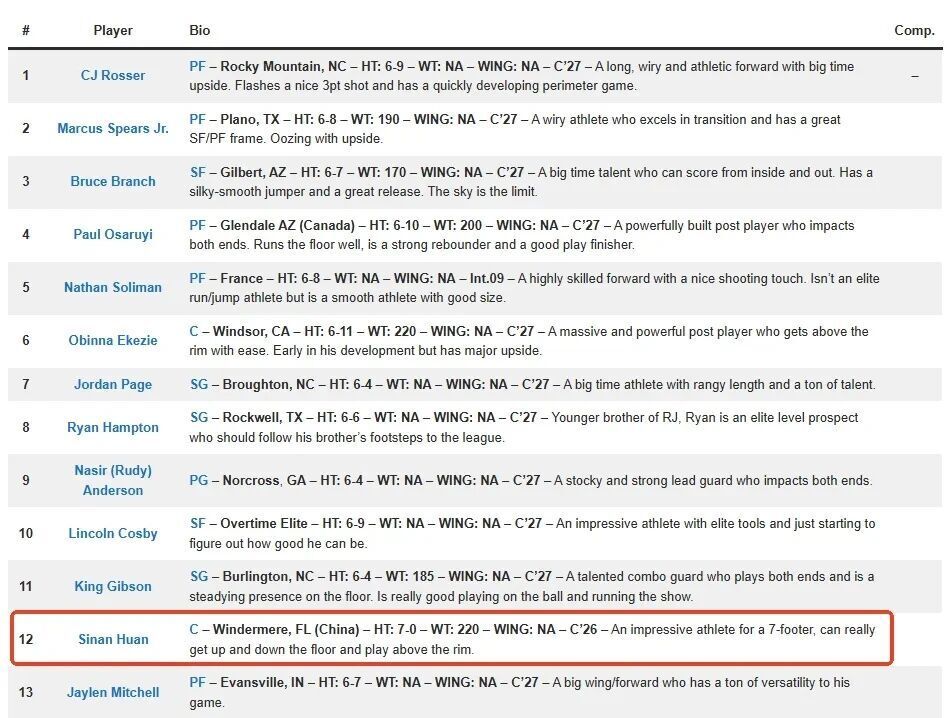 其实某种程度来说,郇斯楠这样瘦长灵活型内线,的确比杨瀚森更能得到NBA球队的青睐,所以自然在选秀排名上更高。当然,杨瀚森是实打实的首轮秀,郇斯楠则还停留在预测阶段,他需要在NCAA赛场打出亮眼表现才能收获实质性成果。