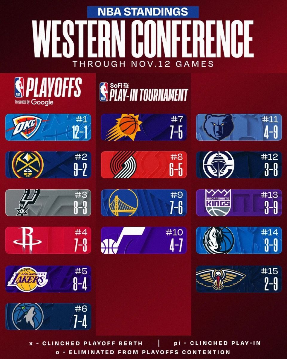 一边争冠军,一边争状元,本赛季正式上演。截至今天赛前,雷霆12胜1负领跑全联盟,领先东部第一的活塞1.5个胜场,领先西部第二的掘金2个胜场。别忘了,雷霆二当家杰伦-威廉姆斯还在养伤,本赛季一场都没打过。