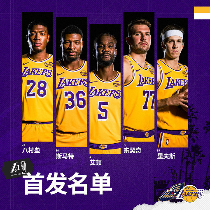 湖人:东契奇、艾顿、里夫斯、斯马特、八村垒