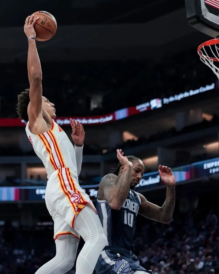 同样是那场比赛,老鹰球员奥孔古18投11中,狂轰32分11篮板2助攻2抢断3盖帽。杰伦-约翰逊和奥孔古同场均砍下30+10,成为老鹰队史最年轻的二人组。特雷杨的处境很尴尬,今年休赛期,老鹰拒绝给他4年2.29亿美元的续约合同。