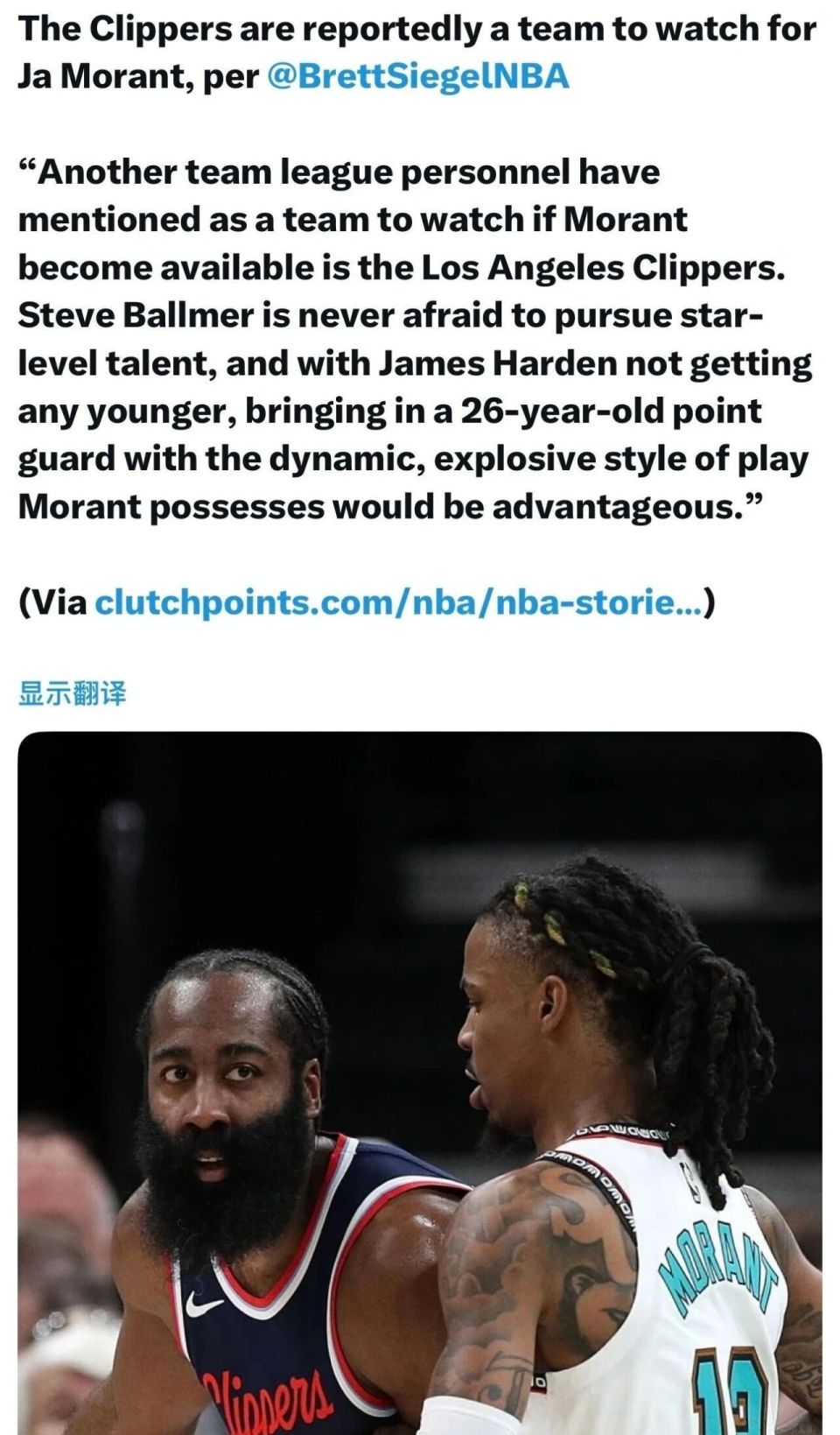 对了,据名记Siegel报道,阵容老化严重的快船同样是关注莫兰特去向的球队之一。