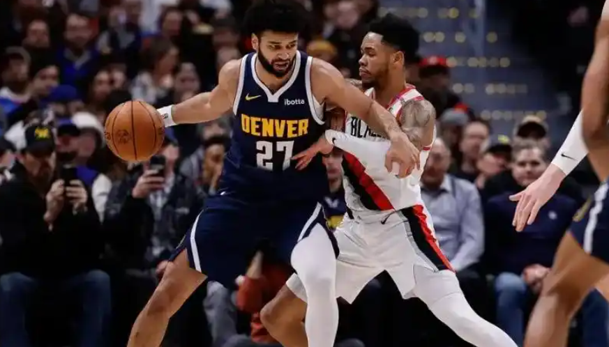 然后我们来关注下比赛情况,当时的掘金落后已经非常多,比赛几乎进入到“垃圾时间”。当时的开拓者已经将利拉德等主力球员全部换下。所以当穆雷开始个人表演的时候,根本没有遭遇到任何的防守,就是眼睁睁看着他完成得分。