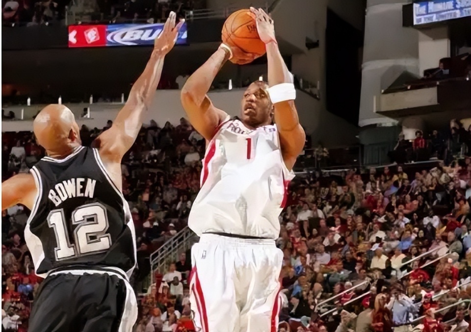 最后让我们来看一下载入NBA史册,至今仍会被球迷们津津乐道的麦迪时刻。对手方面,火箭当时在主场迎战马刺,马刺那时是联盟最强的球队之一,拥有GDP组合的同时,还有一众能力拔群的角色球员。