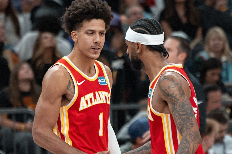 过去三场杰伦约翰逊场均可以拿下26.7分12.7篮板9.7助攻3抢断,投篮命中率66.7%,三分命中率更是高达72.7%。