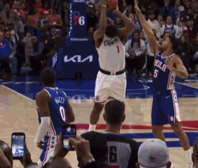 不得不说,这个球引起了巨大的争议,不少球迷认为这肯定是犯规,但裁判并没有把应有的哨吹给哈登。慢镜头显示,格雷姆斯的这次触碰,确实也影响到了哈登的出手。