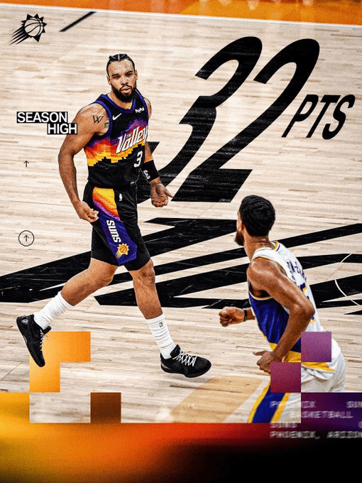 近两场比赛,狄龙分别轰下32分和34分,本赛季目前为止场均出战29.9分钟,贡献22分3.3板1.9助2断,三项命中率45.9%、33.9%和93.9%,在太阳队内场均得分仅次于布克(28.4分),场均抢断数高居队内榜首,让人爱不释手的攻防一体锋卫摇摆人。