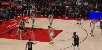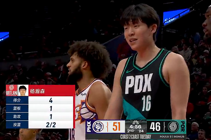 次节中段,中国球员杨瀚森获得登场机会,先是背打马威篮下2分命中,随后吃饼篮下完成暴扣。