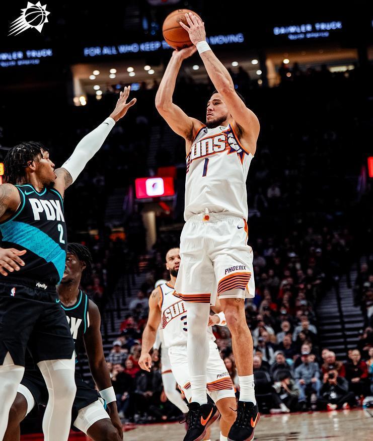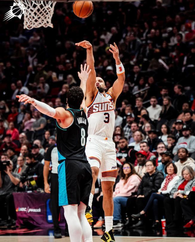 在布克的率领下,太阳新赛季的表现,让所有球迷眼前一亮,在上一场惜败给亚特兰大老鹰后,他们仍然以8胜6负的战绩,在西部积分榜上排名前八,这一个比赛日,太阳奔赴波特兰挑战开拓者,本场比赛布克率领太阳打出了水银泻地般的流畅进攻,三节战罢就终结了胜负的悬念,帮助太阳以127-110大胜开拓者。