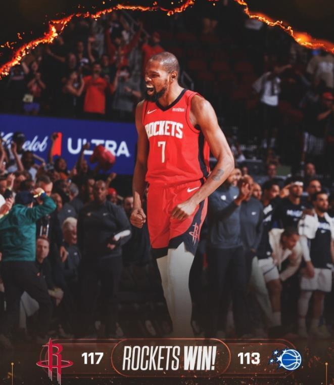 关键时刻12中8,稳砍26分!火箭队火力升级,杜兰特完胜杰伦格林