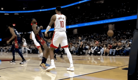 艾伦禁区逆天隔扣申京(被吹罚进攻犯规)