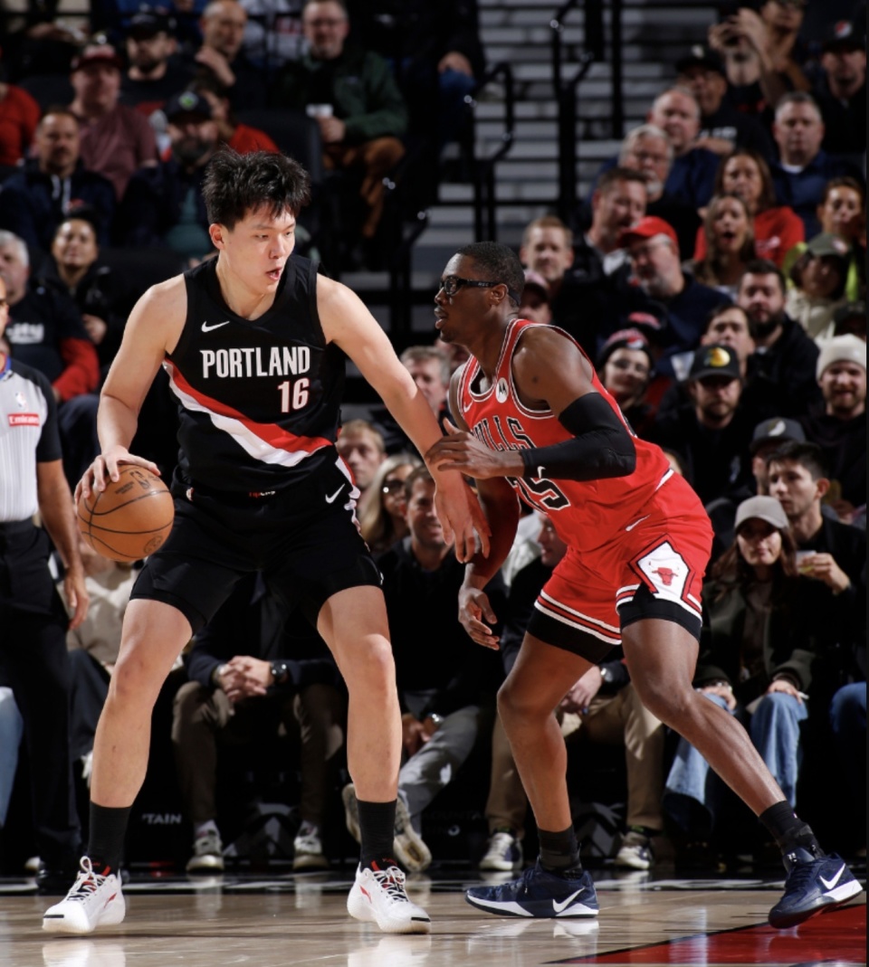 杨瀚森获得了连续第二场登场的机会。全场出战7分56秒,4投1中仅拿到2分2个篮板和1次助攻,正负值达到了-10。作为一名备受关注的年轻内线,他在下半场的表现略显迷失。杨瀚森上半场那一次背身单打值得称赞,这种NBA越来越少见的“古典背身打法”在低位单打效率上展现出了一定潜力,但这并不能掩盖他在适应高强度对抗时的短板。比赛中有一个镜头极具代表性,也暴露了杨瀚森目前存在的问题。在一次快攻反击中,队友阿夫迪亚的长传球精准地找到了前场的杨瀚森。这本是一个绝佳的得分良机,凭借他明显的身高优势,完全可以选择暴扣终结或者是高举高打来稳稳拿分。然而,杨瀚森在接球时出现脱手,没有第一时间拿稳皮球,等他调整好节奏准备再出手时,已经被回防的公牛后卫达伦-特里直接盖掉。