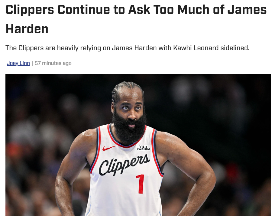 弗兰克公开表示:“快船有责任照顾好詹姆斯-哈登的身体。”