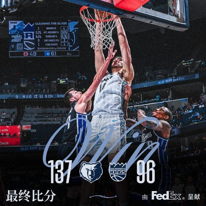 单场42次助攻进账,创造灰熊新的队史纪录,此前球队单场最高助攻数为41次。