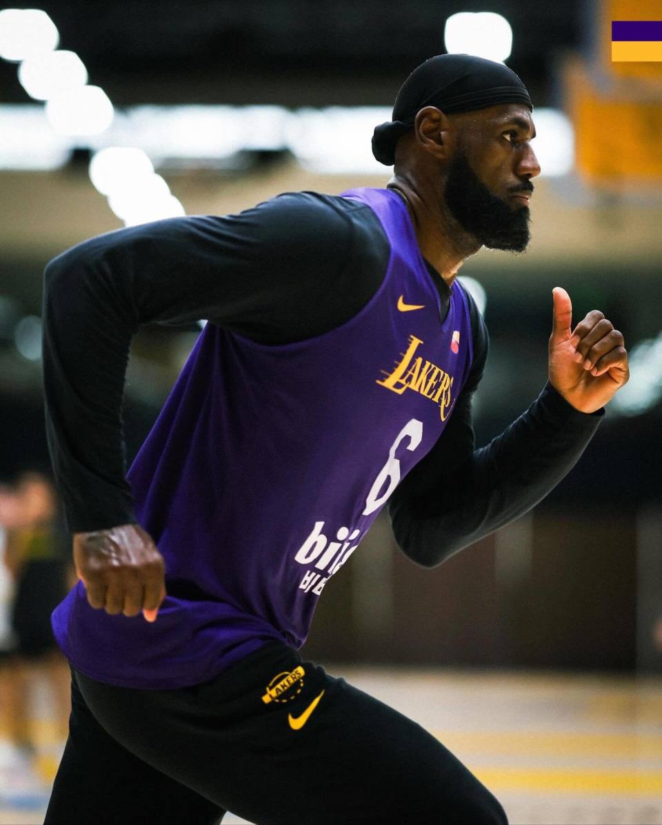 北京时间11月23日,湖人队正式开启短暂的客场之旅,詹姆斯和东契奇已经率队飞往犹他,老詹满脸笑容十分开心;出征前,湖人众将进行了日常训练,加练期间詹姆斯连中14记三分球,现场对八村垒说道:兄弟抱歉,我搞砸了你的训练。