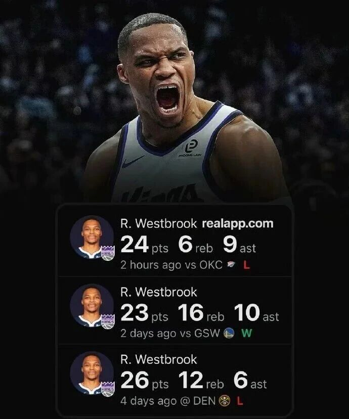 相信大家最关注的是威少去向,本赛季至今为国王出战17场比赛首发11次,场均上阵28.2分钟,贡献14.1分6.9板6.5助3.1失误1.1断,投篮命中率44.4%,场均以38.9%命中率扔进2.1记三分球,证明了自己哪怕已37岁可油箱里还有不少油。