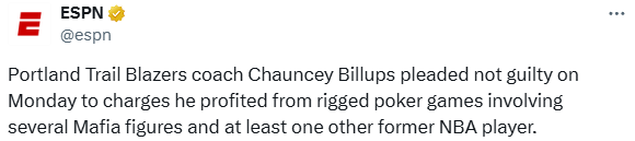据报道,比卢普斯被指控涉嫌参与有犯罪组织支持的赌场扑克游戏,在协助诱导参加非法扑克游戏中担任“关键人物”,导致受害者损失了约7百万美元。如果比卢普斯最终被定罪,这些指控最高可判处20年监禁。